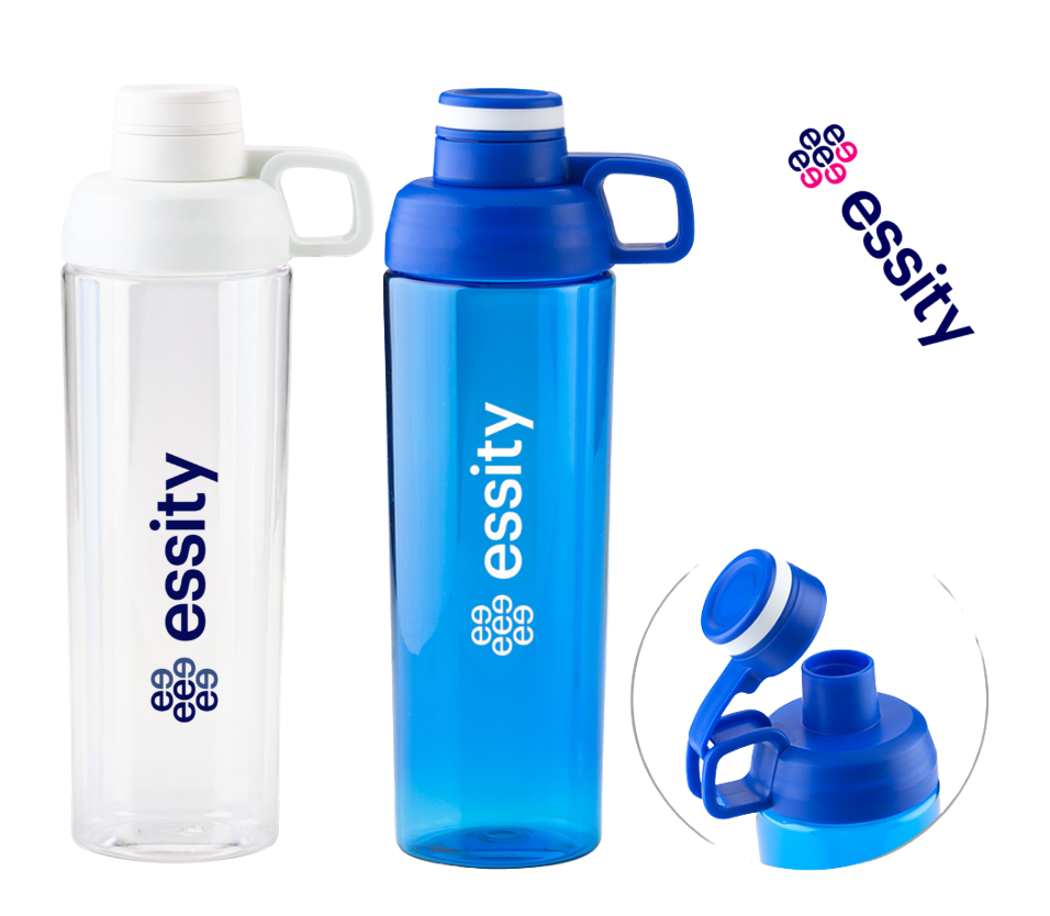 Elaborado en plástico reciclado PETG. Material de alta transparencia, mayor firmeza y durabilidad, libre de BPA, resistente al desgaste e impactos menores y reciclable. Mantiene líquidos tibios hasta 60°C. Tapa de rosca.