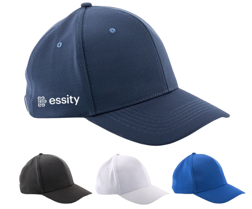 Gorra en poliéster de alta calidad, de 6 páneles, con visera indeformable, botón forrado y con cierre de hebilla metálica.