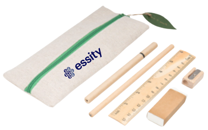 Cartuchera escolar de diseño fresco y natural que incluye: lápiz, bolígrafo, borrador, sacapuntas y regla de 15 cm.. Area impresion: Screen Cartuchera: 14 cm x 2 cm. Tampo en la regla:7 cm X 0,6 cm. Tampo en lápiz: 7 cm X 0,5 cm. Tampo en boligrafo: 7 cm X 0,7 cm. Tampo en el borrador: 3,5 cm X 1,5 cm. Tampo en el tajalapiz: 2 cm X 1 cm
